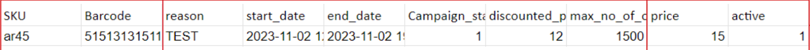 Create a CSV file including all the products that you want to update. The file should contain