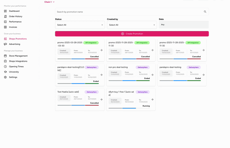 What is the status of your promotions (Cancelled, Ended, Running, Upcoming)